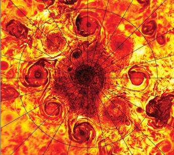 “Lo studio si è basato su una serie di immagini di Jiram di eccezionale qualità, in termini di risoluzione e copertura spaziale. Tale qualità è stata possibile grazie all’attento lavoro di pianificazione delle osservazioni da parte del team scientifico italiano” sottolinea Christina Plainaki, Ricercatrice nelle Scienze del Sistema Solare, Asi Project Scientist per l’esperimento Jiram/Juno. “In questo modo -prosegue Plainaki- è stato possibile non solo determinare i valori tipici delle velocità dei venti all’interno vortici polari ma anche studiarne le caratteristiche specifiche delle distribuzioni spaziali. Questo ha implicazioni profonde sulla natura dei fenomeni che lì hanno luogo, legati in particolare alla convezione e alla turbolenza. Lo studio di Siegelman, anche per l’ampio ricorso a metodi propri dell’oceanografia terrestre, si distingue sicuramente nell’ambito della scienza di Giove per originalità e profondità interpretativa”.