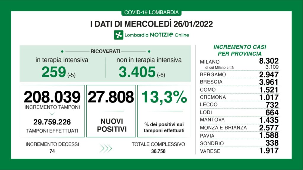 Sono ancora più di 1000 i nuovi contagi da Covid 19 nelle ultime 24 ore in provincia di Cremona, 1.017 il numero comunicato oggi dall’assessorato al Welfare della Regione, una cifra che ci colloca in posizione mediana rispetto alla Regione, dove sono stati effettuati 208.039 tamponi, 27.808 dei quali positivi, il13,3%.