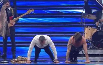 FantaSanremo, Amadeus in campo: flessioni con Rkomi