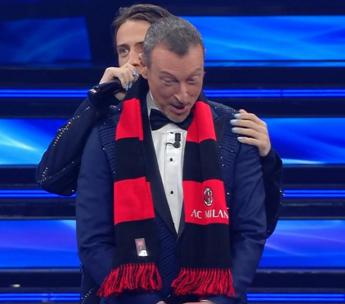 Sanremo 2022, Sangiovanni e il gol a Amadeus: ecco sciarpa Milan