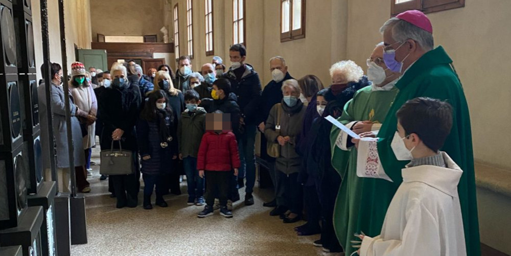 Si è conclusa con la benedizione del cinerario posto nel corridoio del chiostro, la vista pastorale di tre giorni del vescovo Napolioni alla parrocchia di S. Abbondio. L’ultimo passaggio di un lungo percorso regolarizzato qualche giorno fa dal punto di vista civilistico dalla modifica del regolamento cimiteriale da parte della Commissione Ambiente del Comune.