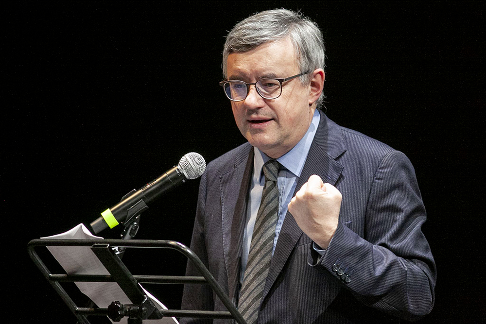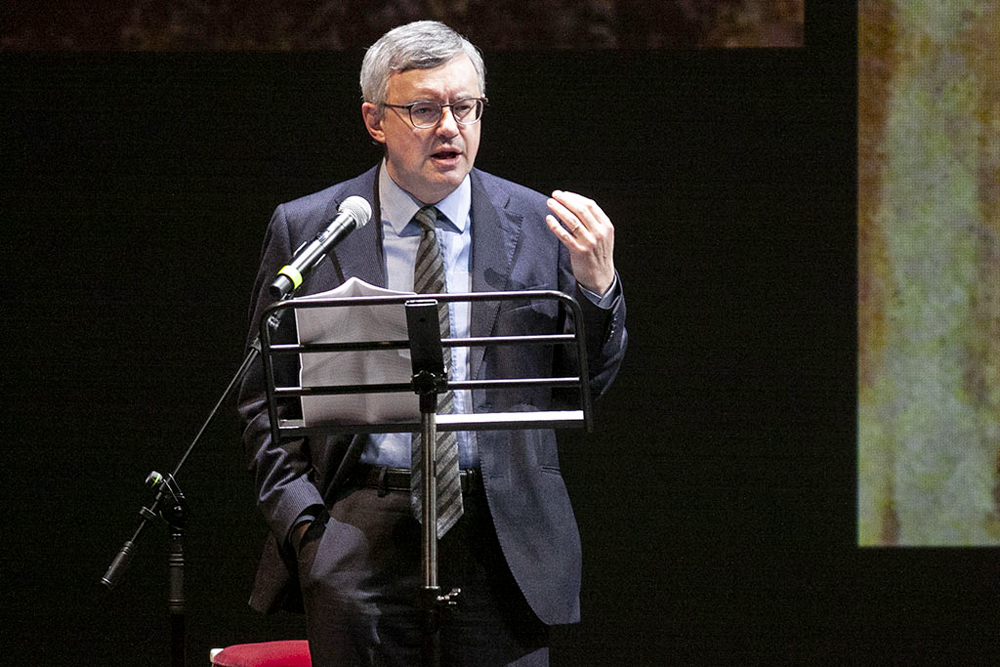 Teatro Ponchielli stipato per il primo dei tre “talk” di divulgazione culturale in programma (venerdì sarà la volta di Luca Mercalli). Il racconto di Dante guerriero fatto dallo storico Alessandro Barbero ha suscitato un grandissimo interesse da parte di un pubblico in gran parte composto da giovani: un migliaio di persone ha applaudito il professore di storia medievale divenuto popolare grazie ai programmi su Rai Storia e alla maniera appassionata di affrontare una materia che difficilmente infiamma le aule scolastiche. Una star quasi suo malgrado: “L’ho già detto, mi fate quasi paura”, ha esordito entrando in scena dopo l’introduzione del sovrintendente Andrea Cigni.