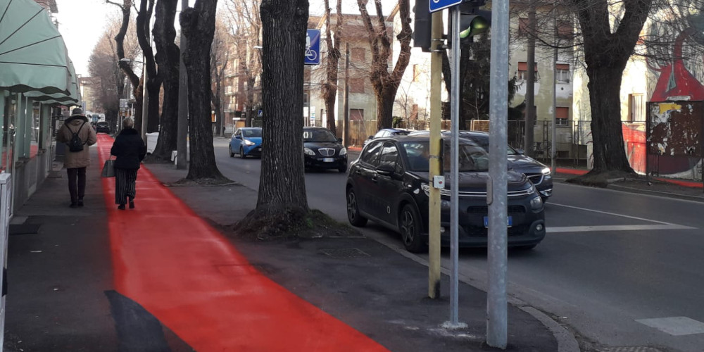 Una striscia di colore rosso lungo i marciapiedi di via Giuseppina. E’ la tanto annunciata corsia ciclabile che congiunge Via Buoso da Dovara a via Battaglione, collegandosi così ad uno dei percorsi del Biciplan cittadino.
