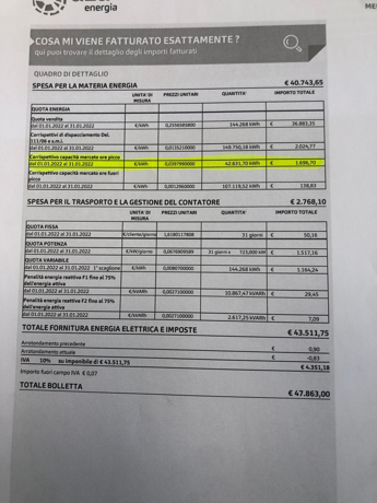 (Adnkronos) – Pronti a delocalizzare. Parte dal bresciano la protesta di un gruppo di aziende che non riesce più a stare dentro i costi per l’aumento vertiginoso delle bollette. Aldo Arici, amministratore di Unifond, impresa di Concesio, dovrà pagare per il solo mese di gennaio quasi 50 mila euro per l’energia elettrica. E fa male, denuncia l’imprenditore, vedere in bolletta il nuovo balzello entrato in vigore dal primo mese di quest’anno: 1700 euro come ‘corrispettivo capacità mercato ore fuori picco’.