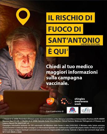 Gsk in Italia supporterà la ‘Global Shingles Week’ con una campagna di sensibilizzazione online che ricorda che “Il rischio di Fuoco Sant’Antonio (Herpes Zoster) è qui”, e come adulti e pazienti fragili possano confrontarsi con il proprio medico per prevenire questa patologia. “Siamo lieti di unire gli sforzi a livello globale con la Federazione Internazionale sull’Invecchiamento per questa nuova iniziativa – spiega Barbara Lasagna, responsabile area vaccini Gsk – dando il via alla prima settimana di sensibilizzazione sull’Herpes Zoster, che in Italia registra anche l’importante supporto della Siti e di Cittadinanzattiva. Il nostro obiettivo comune è contribuire alla diffusione di informazioni utili ai cittadini per confrontarsi con il proprio medico di fiducia e proteggersi da malattie prevenibili che possono avere un notevole impatto sulla qualità di vita”. “Come sostenitore globale delle popolazioni che invecchiano – commenta Jane M Barratt, Segretario generale Ifa – siamo lieti di collaborare a questo sforzo mondiale per aumentare la consapevolezza dell’Herpes Zoster e aiutare gli adulti a capire i rischi e le complicazioni associate a questa dolorosa malattia”.