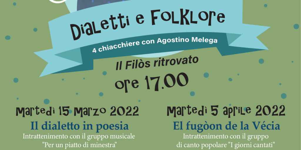 Tema del primo incontro sarà la poesia dialettale. La lettura e il commento dei testi, a cura di Agostino Melega, saranno accompagnati da intermezzi musicali del Gruppo di Musica popolare del Cambonino “Per un piatto di minestra”.