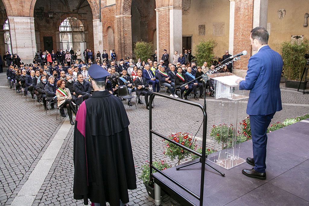 Una riflessione, poi, al conflitto in corso: “Stiamo attraversando una fase davvero difficile. Quando si pensava di esserci messi la pandemia alle spalle e poter ripartire ci è piombata addosso l’emergenza umanitaria scaturita dalla guerra che ha messo in discussione molte certezze, che ha fatto intravedere nuovamente foschi scenari sul piano economico e della tenuta sociale. Sono aspetti che non possono non preoccupare chi ha la responsabilità di preservare l’ordine e la sicurezza pubblica”. Il questore ha citato una frase del presidente Roosevelt: ‘L’unica cosa di cui aver paura è la paura stessa’. “Quella paura che paralizza e genera incertezze e fa perdere lucidità nell’analisi del problemi. Ma sono fermamente convinto che tutta la comunità cremonese saprà rispondere, come già sta facendo, con senso di responsabilità, generosità ed altruismo a questa emergenza”.
