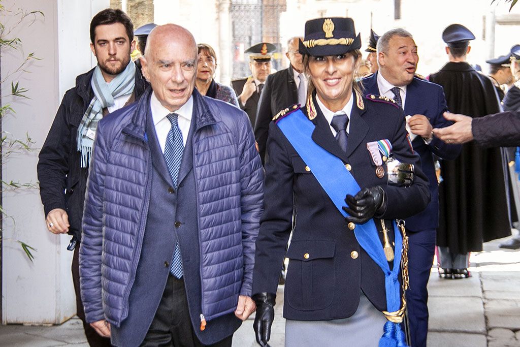 In cortile Federico II, davanti alle autorità civili, politiche, militari e religiose, ha preso la parola il questore Sinigaglia, al suo primo discorso nelle celebrazioni per l’anniversario della Polizia.