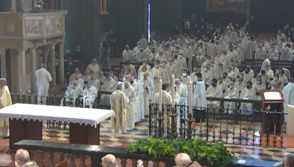 Accanto a Napolioni hanno concelebrato il vescovo emerito Dante Lafranconi, il vicario generale don Massimo Calvi, il vicario per il Clero e la Pastorale don Gianpaolo Maccagni. Presenti inoltre il delegato per la Vita consacrata don Giulio Brambilla, i canonici del Capitolo, i vicari delle cinque zone pastorali, i responsabili delle quattro aree pastorali e i sacerdoti che festeggiano un particolare anniversario di ordinazione.