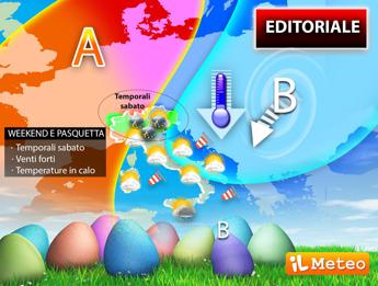 Il cambio pasquale si tradurrà in un rapido e breve peggioramento nella giornata di sabato 16 con qualche temporale soprattutto al Nord; il giorno seguente, per la Santa Pasqua tornerà il sole quasi ovunque, ma registreremo un sensibile calo nella colonnina di mercurio: Santa Pasqua e Lunedì dell’Angelo con tempo buono, soleggiato, seppur più fresco e a tratti ventoso.