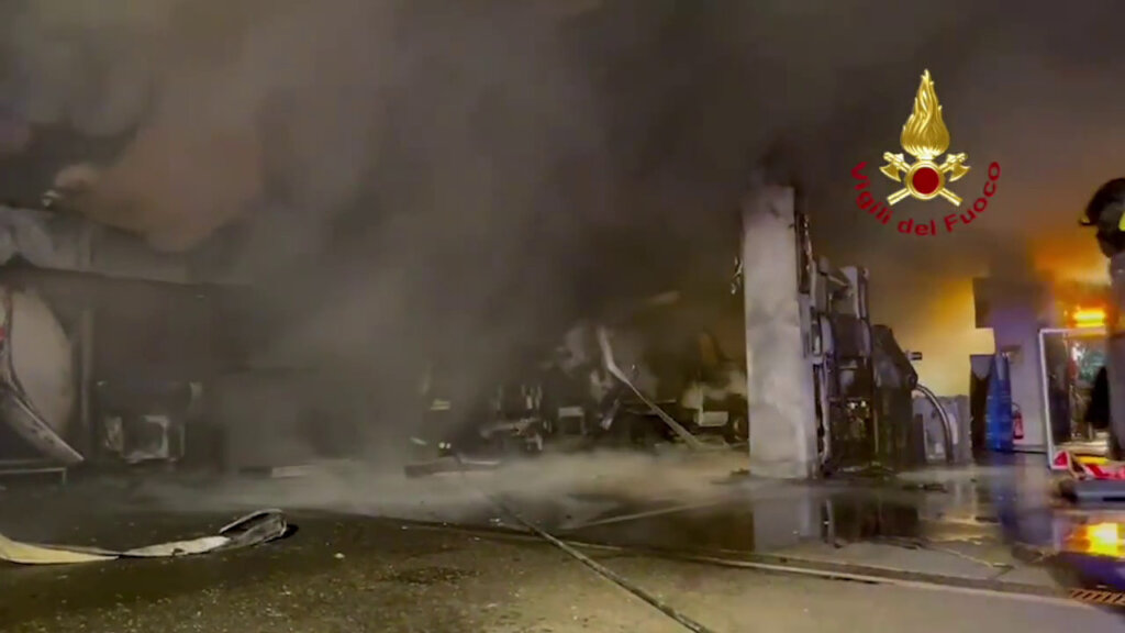 Incendio in un distributore di carburante a Cagliari