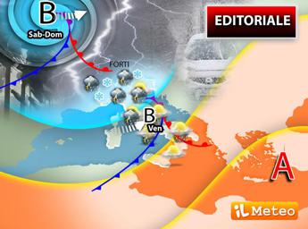 Anche i venti, ovviamente, saranno a rotazione ciclonica: forte Scirocco sull’Adriatico e acqua alta a Venezia, venti occidentali sul bacino tirrenico con intensificazione del Libeccio dal pomeriggio. Una situazione meteo da manuale, ma attenzione! A causa di una ‘goccia fredda’ presente in quota, cioè di un’area depressionaria di forma quasi circolare colma di aria più instabile, avremo anche locale forte maltempo fino al primo pomeriggio con temporali e rovesci.