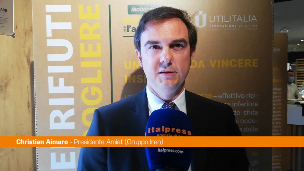 Christian Aimaro, presidente di Amiat (gruppo Iren), parla dei progetti di sensibilizzazione sulla raccolta differenziata, a margine della tappa di Torino del Roadshow della Sostenibilità di McDonald’s.