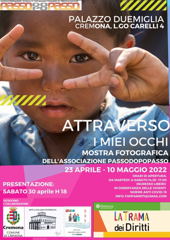 È frutto del progetto “Attraverso i miei occhi” dell’Associazione ‘PASSOdopoPASSO’, promosso dai Vigili del Fuoco Salvatore Belluardo di Cremona e Giorgio Pieri di Alessandria, che in Nepal andavano in viaggio legati da una passione per la montagna e due mesi dopo il sisma del 2015 decisero di tornare con un progetto umanitario tuttora in corso. Le tappe sono racchiuse nella mostra fotografica “Attraverso i miei occhi” allestita nel Palazzo Duemiglia di Cremona, visitabile con ingresso gratuito fino al 10 maggio.