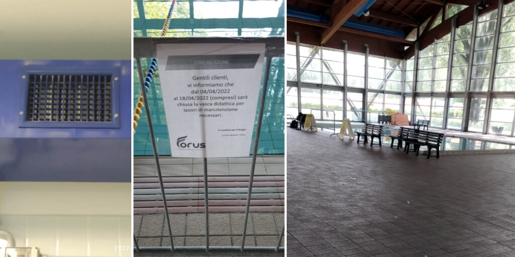 Tra l’altro, non nuova alla gestione Forus: alla piscina Manara di Busto Arsizio, ad esempio, la piscina dei bambini e la vasca da 25 metri risultano a loro volta chiuse dal 4 aprile per manutenzione. Situazione analoga al centro natatorio di Crema, anch’esso con la stessa gestione: anche qui alcune vasche sono chiuse per manutenzione da oltre un mese, come ha denunciato il consigliere comunale M5S Manuel Draghetti, ma non si sa quando saranno riaperte.