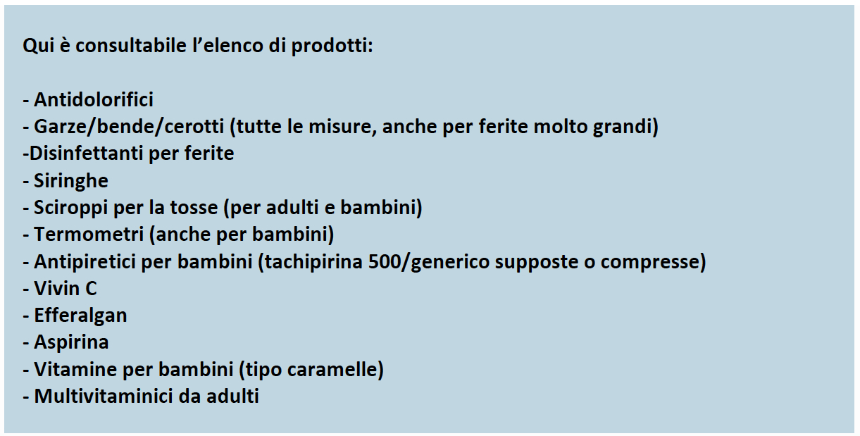 Il Cerchio, Santa Federici, Ventaglio Blu e la Fondazione Moreni promuovono una raccolta di farmaci per l’Ucraina. Anche la Farmacia Ziliotti, in collaborazione con Il Cerchio MED, partecipa alla raccolta. I materiali saranno consegnati direttamente attraverso canali sicuri.I farmaci sono consegnabili, negli orari di apertura, in tutte le sedi del Cerchio (Cremona, Crema, Casalmaggiore, Vigevano), l’ambulatorio NEOS, l’ambulatorio Il Cerchio MED, Ventaglio Blu e Cascina Moreni a Cremona, Santa Federici e Santa Federici MED a Casalmaggiore. Possono essere aggiunti alla spesa nella Farmacia Porta Venezia di Piazza Libertà 4 e nella Parafarmacia San Camillo in via dell’Innovazione Digitale 6 (Polo Verde). “Ringraziando anticipatamente chiunque volesse partecipare, vi chiediamo di donare esclusivamente i farmaci indicati”, fanno sapere gli organizzatori.