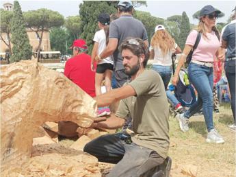 A Piazza di Siena c’è un cavallo particolare che si farà ammirare da cittadini e turisti della Capitale anche dopo la fine del Concorso Internazionale, che si chiuderà domenica. Lo ha realizzato Andrea Gandini, artista romano di 25 anni, che da giorni è seduto a pochi passi dall’Ovale dove si esibiscono cavalieri e amazzoni e con scalpello e motosega cerca di dare una nuova veste alla base di un pino abbattuto dalle istituzioni cittadine perché pericolante. Fise e Sport e Salute, che organizzano l’89a edizione del concorso di Piazza di Siena, hanno però dato “mandato” ad Andrea di valorizzare quel tronco di albero tagliato per farne un’opera d’arte e nobilitare l’area, uno degli obiettivi primari della nuova “vision” della piazza. Andrea non è nuovo a questo tipo di lavori.