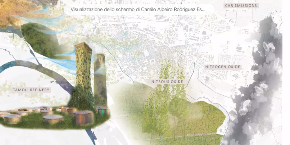 Il progetto sta già avendo una visibilità internazionale essendo stato selezionato, insieme ad altri 5, nella shortlist di Superscape 2022, concorso biennale che si tiene a Vienna per stimolare la ricerca di idee innovative di sviluppo urbano. E parla diverse lingue anche il gruppo di laureandi che hanno ideato, per l’area dell’ex raffineria Tamoil, queste torri in materiale tecnologico in grado di assorbire il particolato sottile, valorizzando allo stesso tempo un elemento tipico del paesaggio urbano cremonese come i campanili. Torri di 21 piani che ospitano funzioni come residenza, uffici e ristoranti,