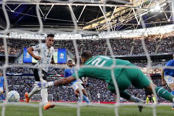 (Adnkronos) – L’Argentina batte l’Italia per 3-0 a Wembley nella Finalissima 2022, il match tra i campioni del Sudamerica e i campioni d’Europa del ct Mancini. L’Argentina domina la sfida e si impone con i gol di Lautaro (28′), Di Maria (46′) e Dybala (94′).