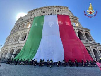 2 giugno, i vigili del fuoco vestono il Colosseo con il tricolore