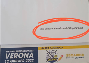 (Adnkronos) – Fa discutere a Verona la lettera che i cittadini scaligeri si sono trovati nella cassetta della posta, con l’invito ‘Barra il Simbolo della Lega – Sboarina sindaco’, in vista del prossimo voto del 12 giugno, per scegliere il primo cittadino del capoluogo veneto. Nell’intestazione della lettera agli elettori, con l’invito al voto per Federico Sboarina, primo cittadino uscente che viene appoggiato da Lega e Fdi (Fi ha scelto invece di schierarsi con l’ex sindaco Flavio Tosi), si legge ‘alla cortese attenzione del capofamiglia’, con una dicitura che sa quantomeno di antico. E che sta attirando critiche e sberleffi anche sul web all’entourage di Sboarina.