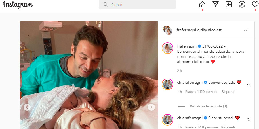 Nuovo fiocco azzurro nella famiglia Ferragni: poche ore fa è venuto infatti alla luce Edoardo, il figlio della maggiore delle sorelle, Francesca. La comunicazione della gravidanza era stata data a dicembre, mentre poche ore fa sul profilo Instagram della ragazza è arrivato l’annuncio della nascita: “21/06/2022 Benvenuto al mondo Edoardo, ancora non riusciamo a credere che ti abbiamo fatto noi” si legge.