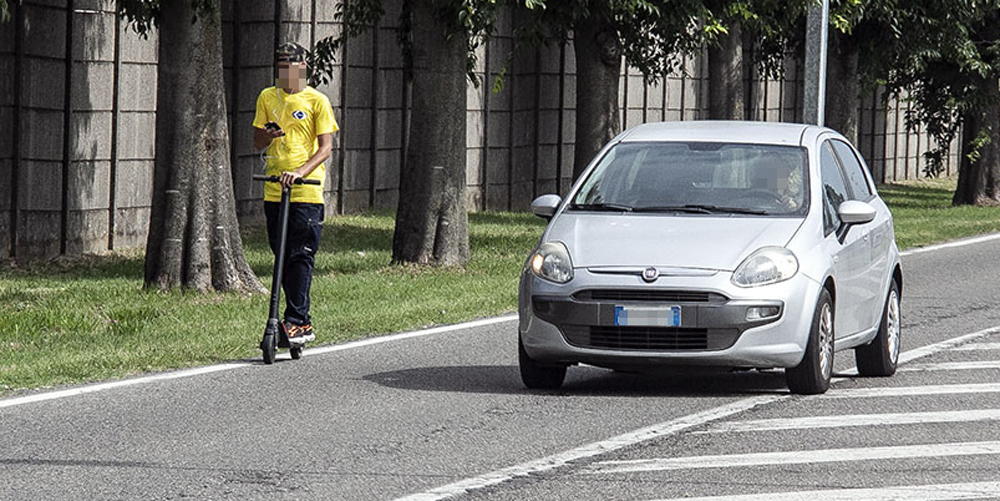 In tangenziale con monopattino