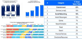 A livello globale ogni visitatore trascorre 2 ore e mezza connesso ogni mese (+10% rispetto Maggio 2019) con Entertainment e Social Networking tra le categorie più rilevanti.