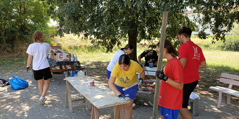 Nel quartiere a nord di Cremona si è pensato di rinnovare le panchine del parco degli Alpini, grande spazio verde accanto alla scuola d’infanzia. L’ideazione del progetto è opera di Paolo La Sala, giovanissimo componente del comitato direttivo del quartiere e Giulia Guerrera, che in questa settimana hanno lavorato e coordinato un gruppo di una decina di ragazzi residenti in zona.