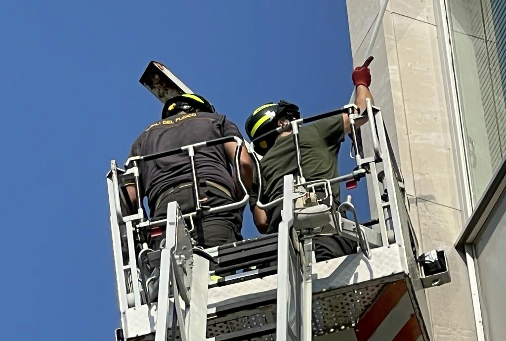 Intervento dei Vigili del Fuoco in corso Mazzini nella mattinata di domenica, dove un’insegna pericolante e semistaccata rischiava di schiantarsi a terra. Il tempestivo intervento dei pompieri, con l’autoscala, ha consentito di rimuoverla prima che potesse staccarsi e precipitare, rischiando di ferire qualche ignaro passante. A dare l’allarme sono stati proprio alcuni cittadini, che hanno notato il neon sospeso nel vuoto.