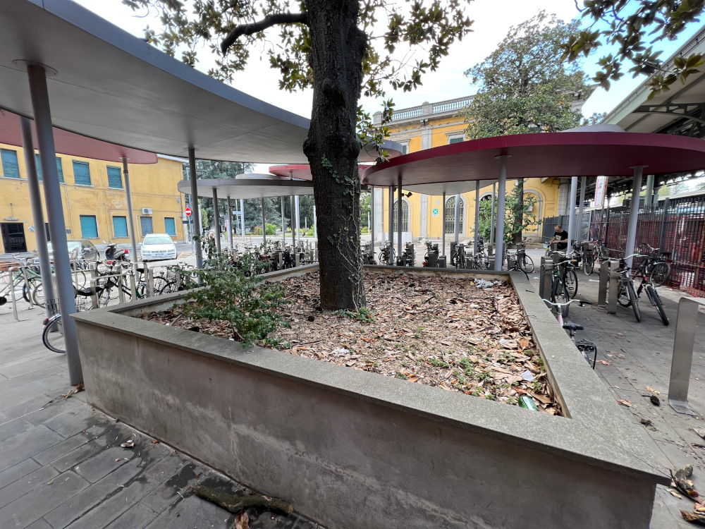 A chiudere il deprimente quadro, il verde sul piazzale, anche a causa del gran caldo e della siccità, appare piuttosto trascurato.