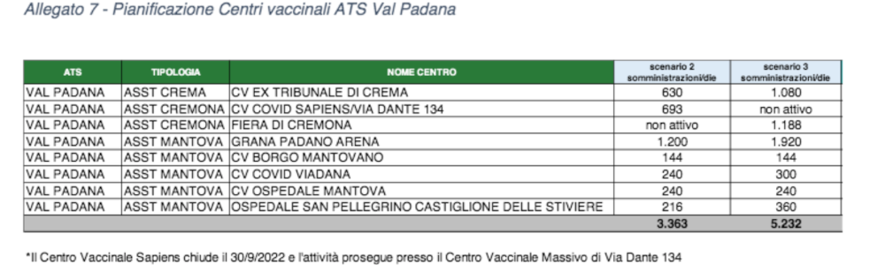 Nell’elenco dei centri vaccinali del Piano figura, per la provincia di Cremona, anche l’ex tribunale di Crema mentre è sparito quello di Soresina, presso il Robbiani, che aveva svolto un’importante funzione “intermedia” durante la scorsa campagna vaccinale. Non figura alcun centro nemmeno sul casalasco; la sede più vicina è quella di Viadana.