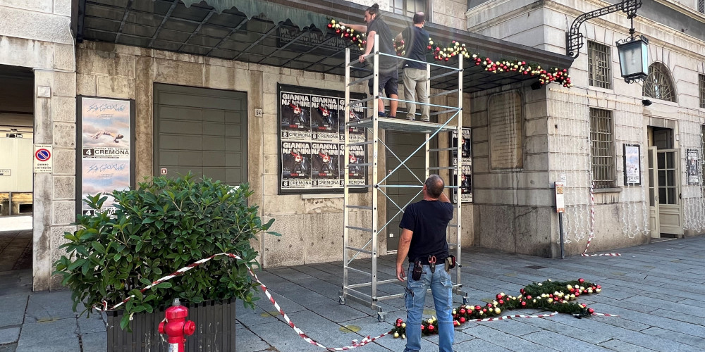 Cosa ci fa il teatro Ponchielli addobbato con festoni e luci natalizie in piena estate? L’allestimento, messo in campo proprio oggi, servirà nientemeno che all’azienda di moda Versace, che lo userà come set per una serie di scatti ad uso interno commerciale, proprio per il Natale. Dall’ufficio stampa del noto marchio non emerge altro, e anche in teatro le bocche sono cucite. La cosa certa, è che da mercoledì a domenica lo stabile è stato affittato, compreso il suo bar, che in questi giorni rimarrà quindi chiuso al pubblico.
