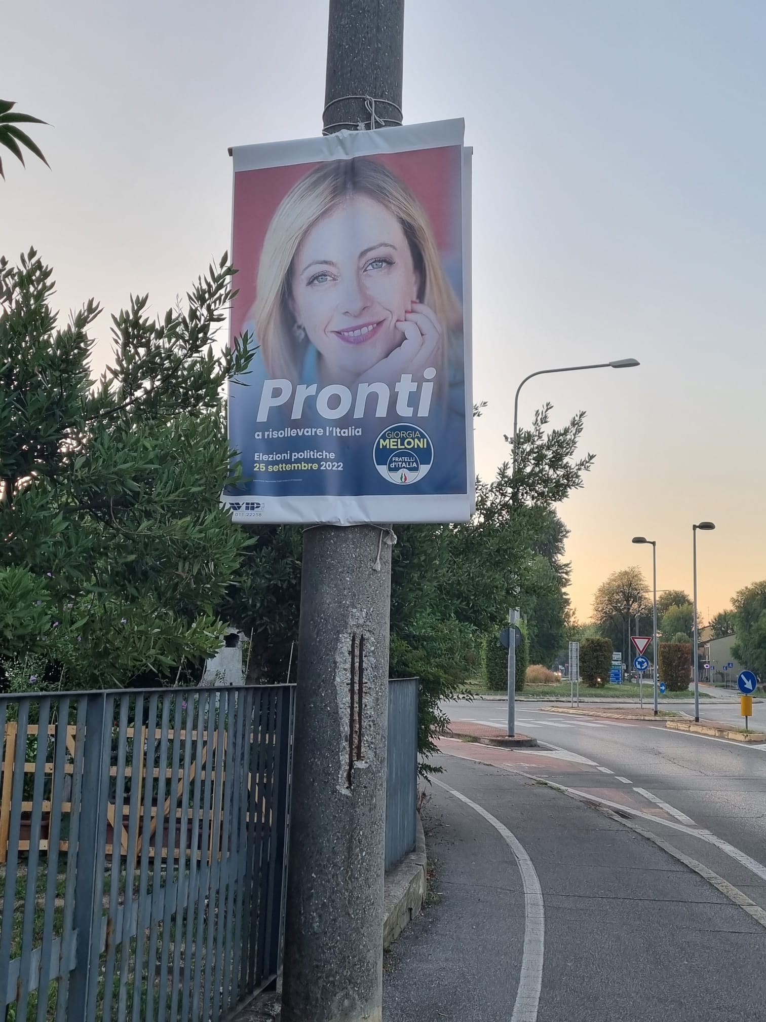 A questo proposito le segnaliamo la comparsa, in alcuni punti della città, di grandi manifesti di propaganda della leader di uno dei partiti in campo: fuori tempo, fuori luogo (sui pali della luce!), fuori legge. Sistemi scorretti dai quali il partito politico cui apparteniamo si tiene, e si è sempre tenuto, accuratamente lontano.