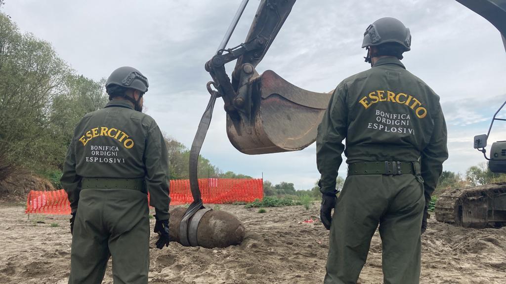 Un team di artificieri dell’Esercito Italiano, in forza al 10° reggimento genio guastatori di Cremona, ha completato con successo le operazioni di disinnesco e di brillamento di una bomba d’aereo risalente al 2° conflitto mondiale a Borgo Virgilio (in provincia di Mantova). L’ordigno, del peso di 1000 libbre e di fabbricazione statunitense, tipo GP Mod. AN-M 65, contenente 240 Kg di esplosivo ad alto potenziale, è stato rinvenuto da alcuni pescatori lo scorso 25 luglio sulla sponda del Po a seguito della forte secca nella zona di Borgoforte.