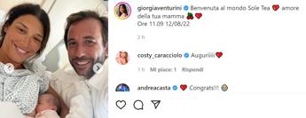 La nascita della piccola è stata registrata alle 11.09 del 12 agosto. Tra gli scatti postati su Instagram, uno immortala la Venturini sorridente e felice accanto al papà della bimba l’imprenditore Marco De Santis (con il quale è convolata a nozze lo scorso 19 giugno), mentre tiene in braccio la nuova arrivata. Tanti gli auguri vip sotto le foto pubblicate per commentare con affetto la nascita di Sole Tea. Tra le prime a congratularsi con la neomamma, Ingrid Muccitelli, Elena Santarelli, Manila Nazzaro, Nicoletta Larini e Michela Quattrociocche.