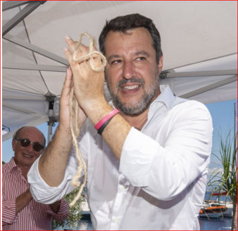 (Adnkronos) – Un regalo devoto a Messina per Matteo Salvini. Al leader della Lega è stata consegnata un pezzo benedetto della corda della Vara dello scorso 15 agosto, la processione dei devoti della città dello Stretto, con il grande carro votivo dedicato alla Madonna Assunta portato in processione e tirato dalle corde. “Messina è nel cuore di Matteo Salvini e noi abbiamo voluto regalargli il più grande simbolo della nostra città: la corda della Vara, per suggellare un legame che va oltre le formalità e le campagne elettorali ma unisce le persone e resta nel tempo”, ha spiegato Nino Germanà, candidato della Lega in Sicilia.