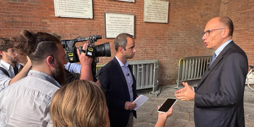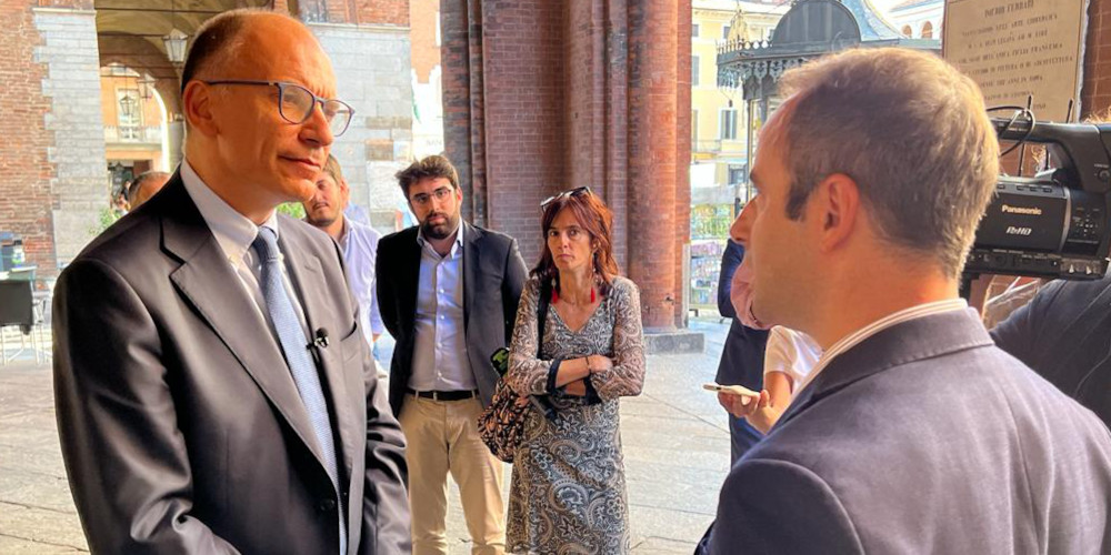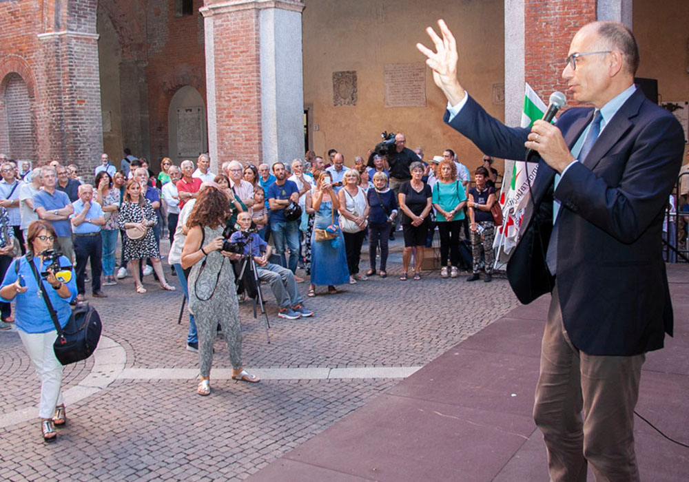 Il segretario del Partito Democratico Enrico Letta è arrivato a Cremona, in cortile Federico II, alle 17,30, leggermente in ritardo sulla tabella di marcia, accolto dall’amministrazione comunale – in testa il sindaco Gianluca Galimberti – e dai vertici del Pd con il segretario provinciale Vittore Soldo e quello cittadino Luca Burgazzi. In una giornata politicamente dominata ancora una volta dai temi economici, con il caro bollette e l’aumento dei tassi deciso dalla Bce per frenare l’inflazione, il segretario Dem ha scelto di cominciare il suo intervento dall’ambiente: “Siamo l’unico partito, insieme a quelli della coalizione, che sta parlando di ambiente, per tutti gli altri praticamente non esiste, come se non fosse questo il tema principale.