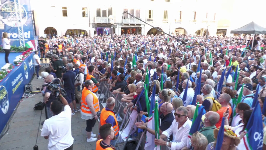 Piazza Gremita, a Mestre, per il comizio di Giorgia Meloni, leader di Fratelli d’Italia, che “sbanca” la sfida delle piazze, in una tradizionalmente non di Destra e semmai più vicina alle posizioni della Lega. La Presidente di FdI si è soffermata proprio sulle polemiche inutili relative al capitolo autonomia, che continua a essere nei programmi di governo, assieme al presidenzialismo.