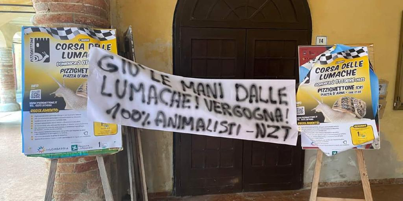 Non tutti, però, apprezzano. Questa mattina sono comparsi striscioni firmati dall’associazione Centopercentoanimalisti – Nzt. “Giù le mani dalle lumache! Vergogna!” recita uno degli stessi striscioni lasciati davanti alla porta d’ingresso del comune di Pizzighettone. Un altro, invece, attacca: “Pizzighettone vergogna della Nazione”. Non è escluso che la contestazione possa manifestarsi anche domenica, in occasione dell’evento stesso e per questo saranno preallertate le Forze dell’Ordine.