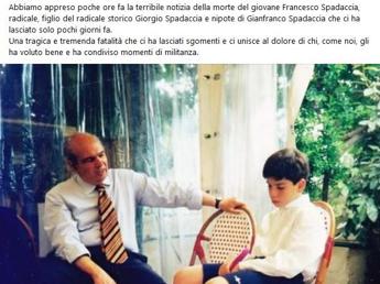 Francesco, giornalista e avvocato, era molto legato allo zio, soprattutto dopo la morte, 5 anni fa, del padre e fratello di Gianfranco, Giorgio Spadaccia. Lo ricordano anche i Radicali italiani, sul proprio profilo Facebook: “Abbiamo appreso poche ore fa la terribile notizia della morte del giovane Francesco Spadaccia, radicale, figlio del radicale storico Giorgio Spadaccia e nipote di Gianfranco Spadaccia che ci ha lasciato solo pochi giorni fa. Una tragica e tremenda fatalità che ci ha lasciati sgomenti e ci unisce al dolore di chi, come noi, gli ha voluto bene e ha condiviso momenti di militanza”.