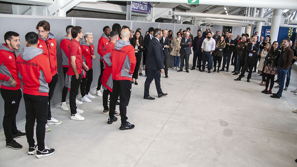 Tour con guide di eccezione per i partner della Cremonese con 10 giocatori della prima squadra a far scoprire il rinnovato Zini accompagnandoli anche negli angoli più remoti e sacri, come gli spogliatoi. Gli invitati hanno anche avuto la possibilità di fare la foto sotto l’arco della Serie A, vero status symbol della dimensione raggiunta dal club che si è anche dotato anche di una casa ancora più splendente.