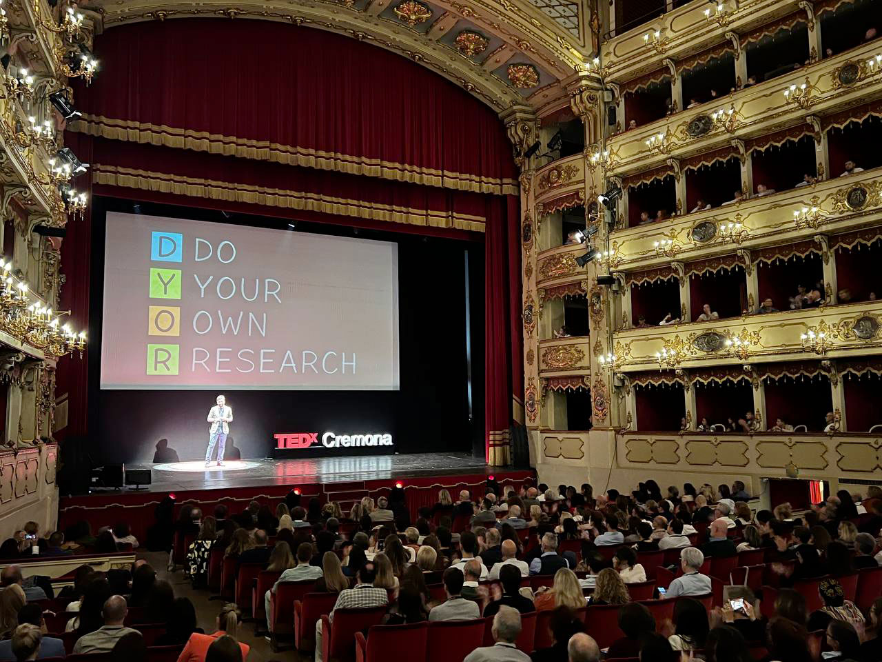 La favolosa complessità del TEDx Cremona raccoglie il plauso di un Ponchielli tutto esaurito, con mille persone, moltissimi giovani e spettatori giunti anche da fuori provincia, per un evento che coinvolge professionisti di spessore, in arrivo da tutta Italia. Gli argomenti trattati spaziano dai grandi temi della vita, all’arte, alla musica, passando per umorismo e l’intelligenza artificiale, con la conduzione della scrittrice e giornalista Giulia Blasi, per un evento ideato e realizzato dal vulcanico Andrea Mattioli e dai suoi 16 instancabili volontari. Già volontari, perché la macchina di TEDx è no-profit. Per tutti i partecipanti una bag con tra le altre cose prodotti per la prima colazione di Rigenera.