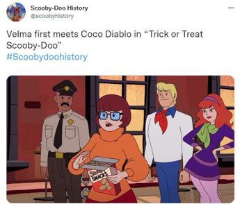 (Adnkronos) – Velma Dinkley è gay: ora è ufficiale. Il video del nuovo film ‘Dolcetto o scherzetto Scooby-Doo!’, in cui si vede l’investigatrice cervellona di uno dei più famosi cartoon di Hanna-Barbera che sgrana gli occhi e arrossisce quando incontra la costumista Coco Diablo, è diventato virale, confermando le ipotesi che i fan di ‘Scooby’ avanzano da decenni.