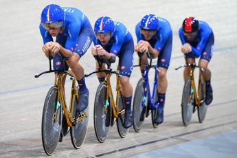 (Adnkronos) – L’Italia vince la medaglia d’argento ai campionati mondiali di ciclismo su pista a Saint-Quentin-en-Yvelines, il velodromo che sarà sede dei Giochi di Parigi 2024. Gli azzurri Simone Consonni, Filippo Ganna, Jonathan Milan e Manlio Moro (3’46″033) cedono per poco più di due decimi alla Gran Bretagna (3’45″829) in finale. Bronzo alla Danimarca.