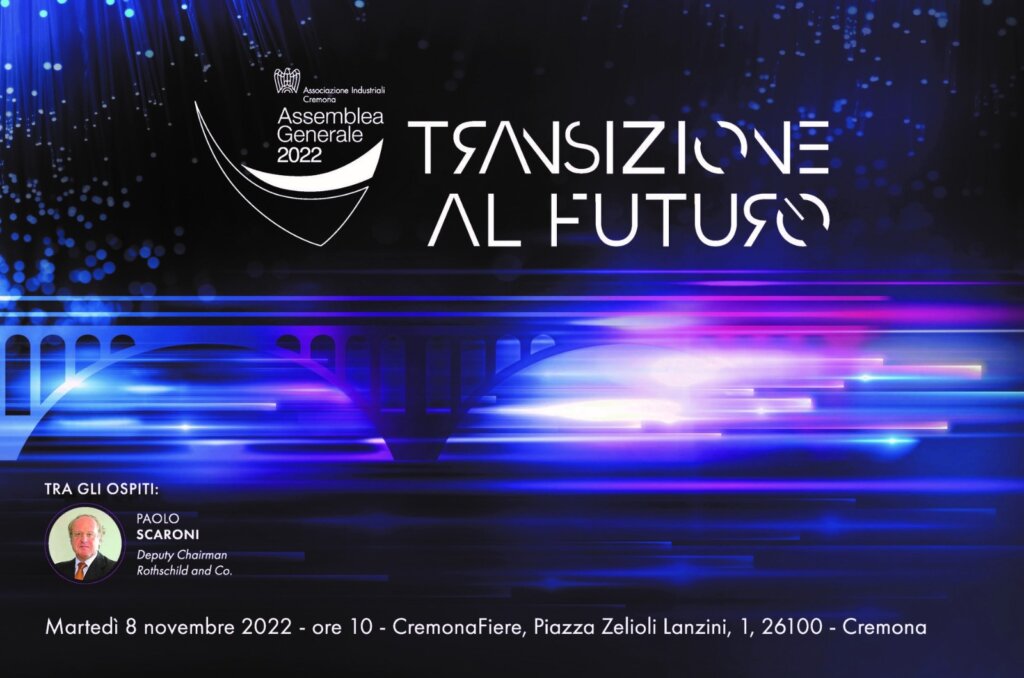 Si terrà martedì 8 novembre l’assemblea generale dell’Associazione Industriali di Cremona, quest’anno negli spazi di CremonaFiera. Un appuntamento annuale che quest’anno ha come filo conduttore la “transizione al futuro” e che vedrà come ospite particolare, tra gli altri, Paolo Scaroni, Deputy Chairman Rothschild and Co.