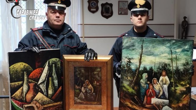 I militari dopo avere acquisito la denuncia hanno iniziato le indagini sul furto e hanno acquisito le immagini di videosorveglianza pubbliche e private presenti nella zona. Inoltre, hanno iniziato a cercare in paese e nei comuni limitrofi e in una cascina abbandonata di Genivolta hanno ritrovato i tre quadri rubati.