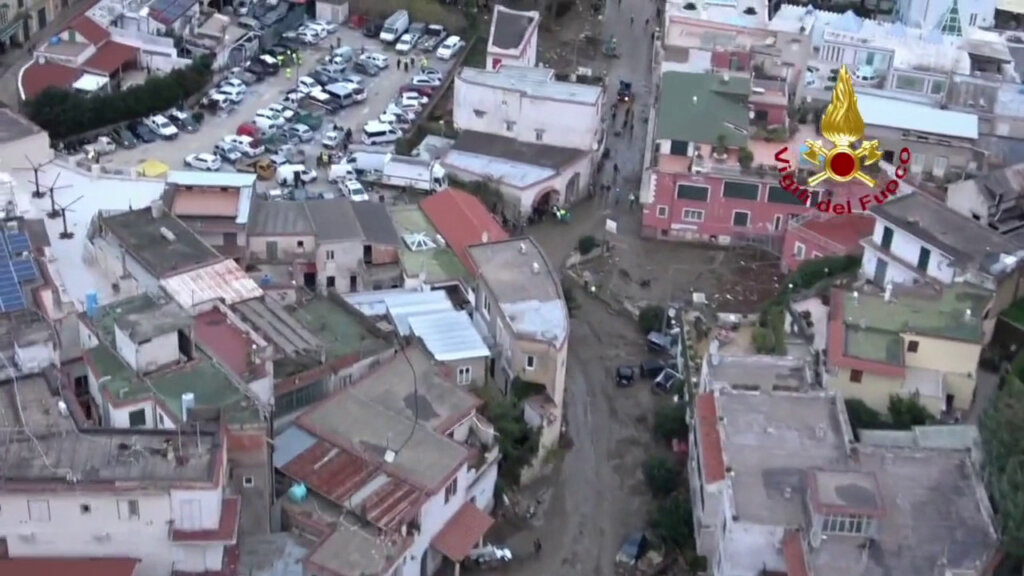 Proseguono le operazioni per la ricerca dei dispersi ad Ischia. Ricognizione aerea di un equipaggio dei Vigili del fuoco sulle zone di Casamicciola Terme interessate dalle colate di fango e detriti. vbo/gsl