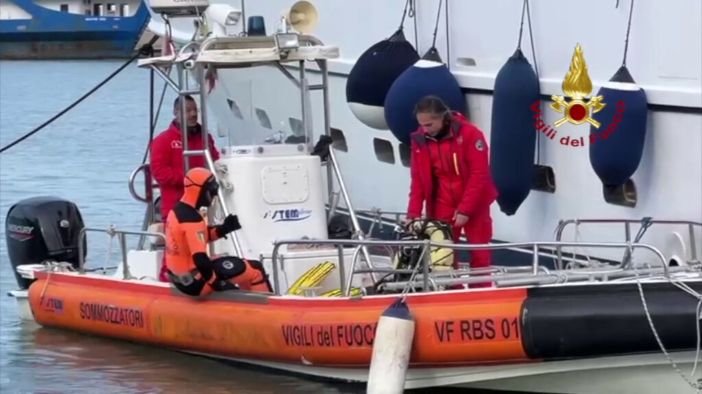 Nella clip specialisti sommozzatori in immersione nella zona del porto di Casamicciola Terme per verificare eventuale presenza di dispersi in mare.
