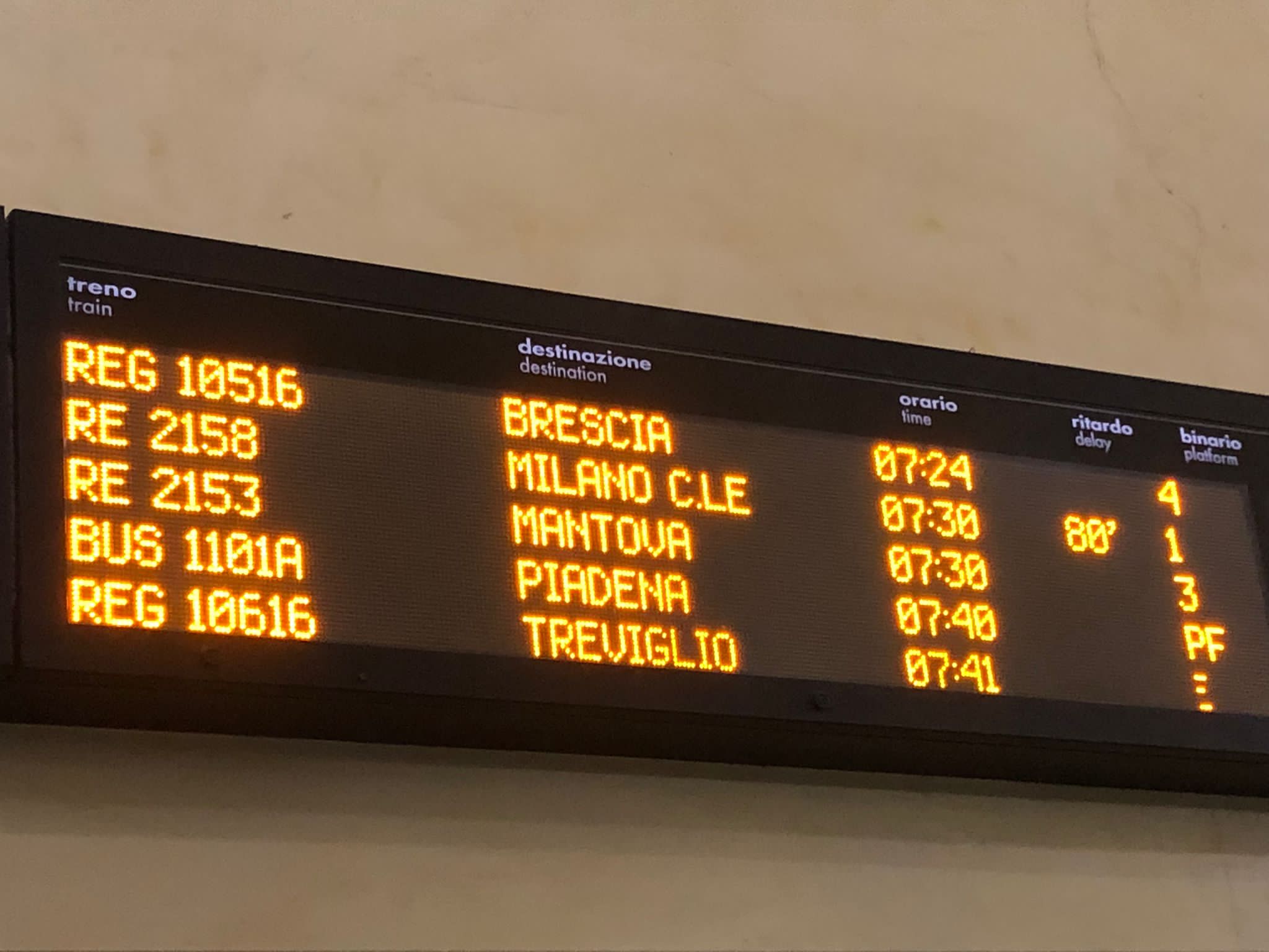 Ancora una volta un brusco risveglio per i pendolari della Mantova-Cremona-Milano. Sui monitor della stazione, il treno mattino, il 2158, ha iniziato a mostrare ritardi di oltre un’ora, arrivando a segnare anche 80 minuti. Si tratta di uno dei convogli più sfruttati, dato l’orario, per chi va a lavorare a Milano o comunque nell’hinterland, senza dimenticare i tantissimi studenti. E’ stata annunciata inizialmente la soppressione, come hanno riportato i pendolari presenti sul convoglio. Ma qualcosa deve essere cambiato, nel frattempo, perché il treno non è mai stato soppresso, ma è ripartito con 110 minuti di ritardo “per le conseguenze di un guasto risolto dal personale di bordo, in coordinamento con la Sala Operativa” come ha comunicato la app di Trenord. Resta inteso che, con due ore di ritardo, alla prova dei fatti è come se il treno fosse stato effettivamente soppresso, dato che molti pendolari hanno ovviato, organizzandosi per salire su altri convogli (o affidandosi al “solito” passaggio in auto).
